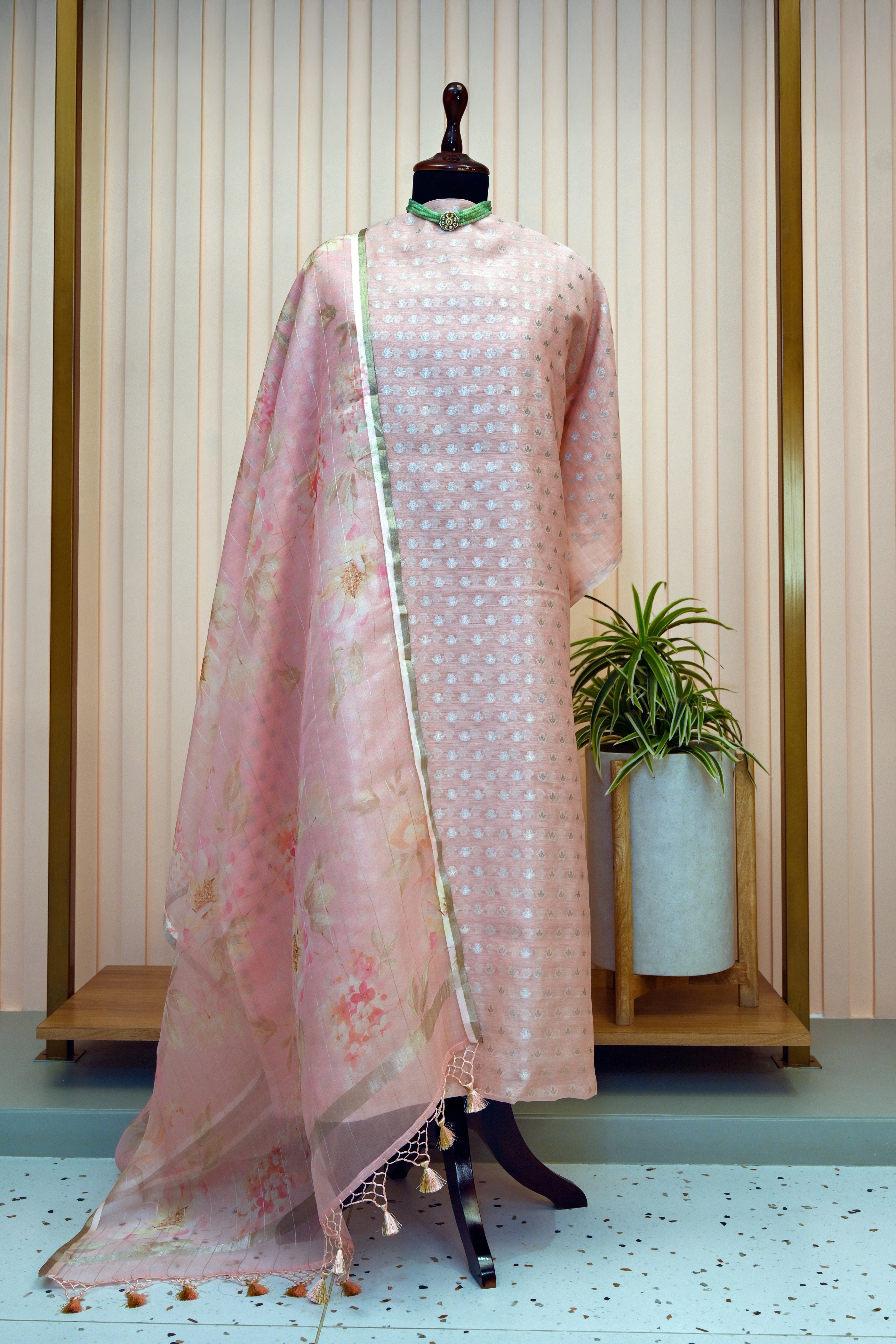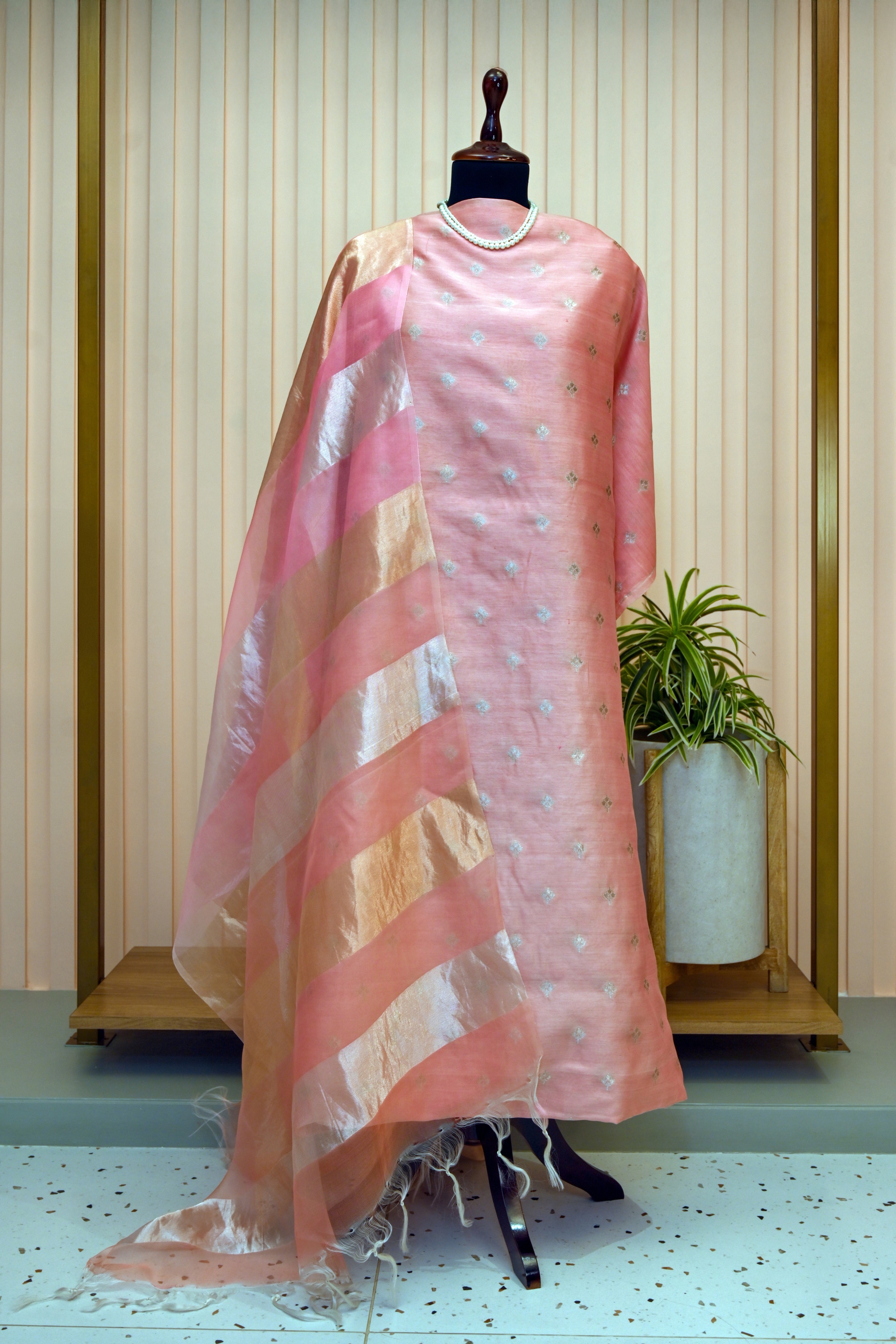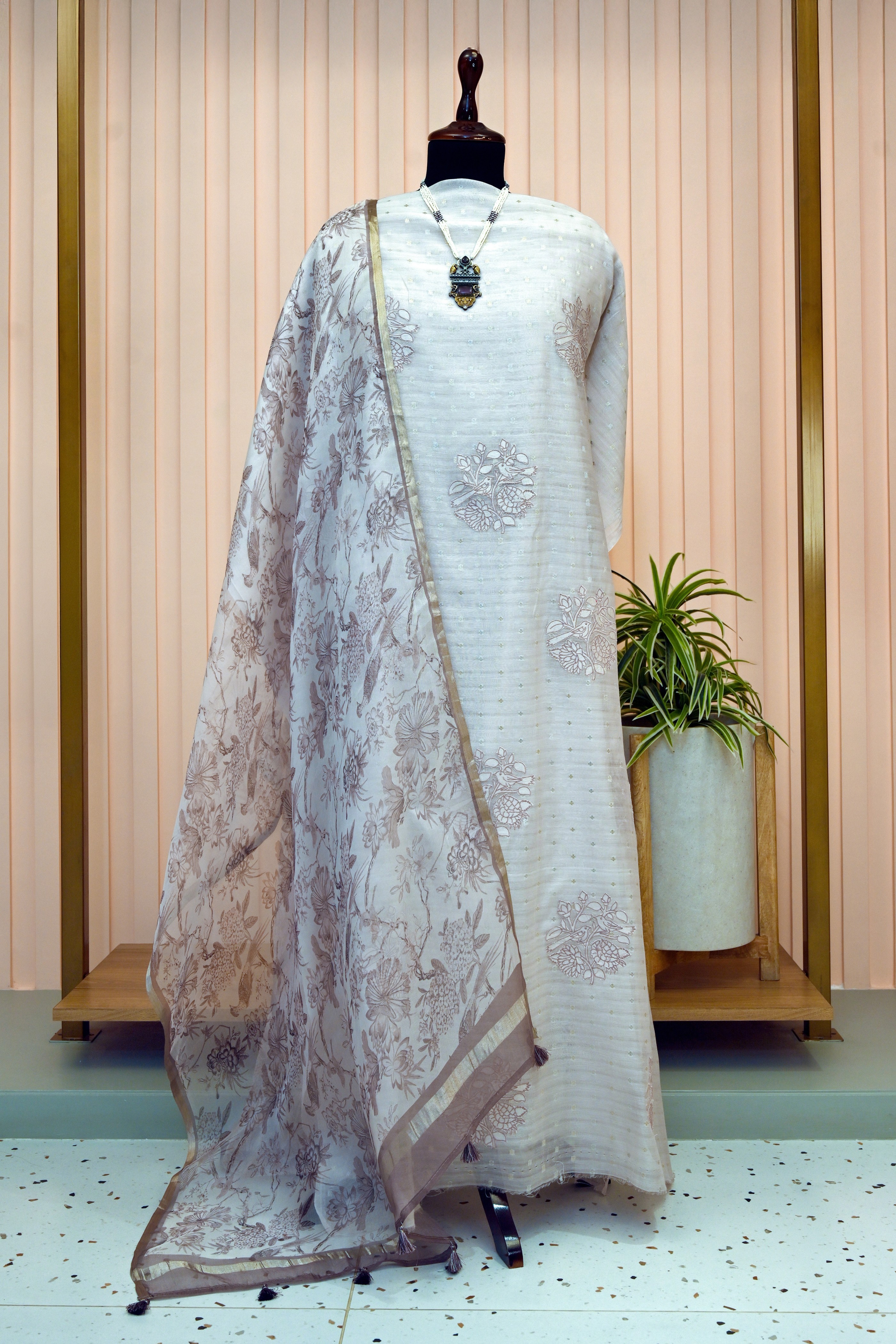 Pastel Lavender Mul Chanderi Organza Dupatta Set