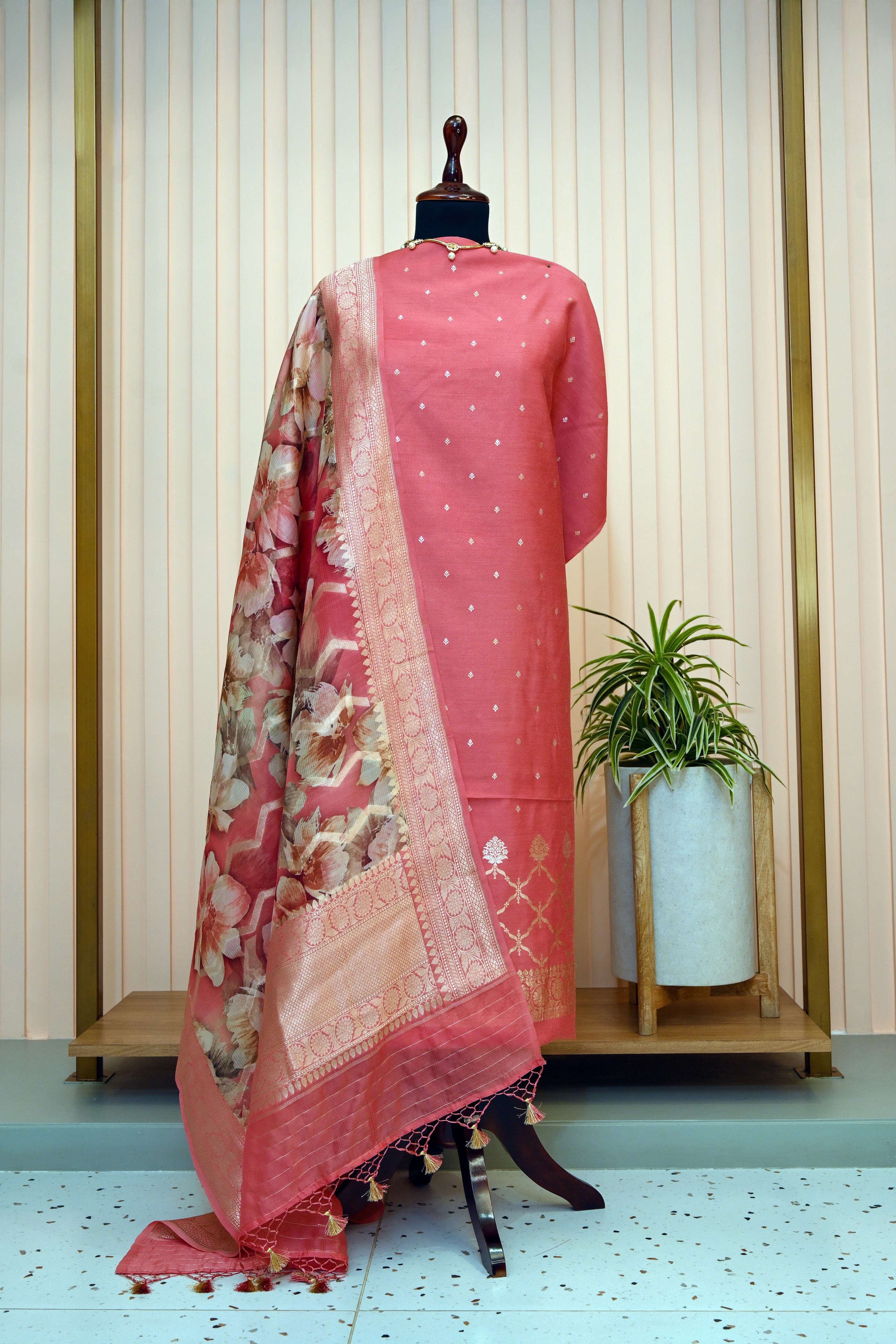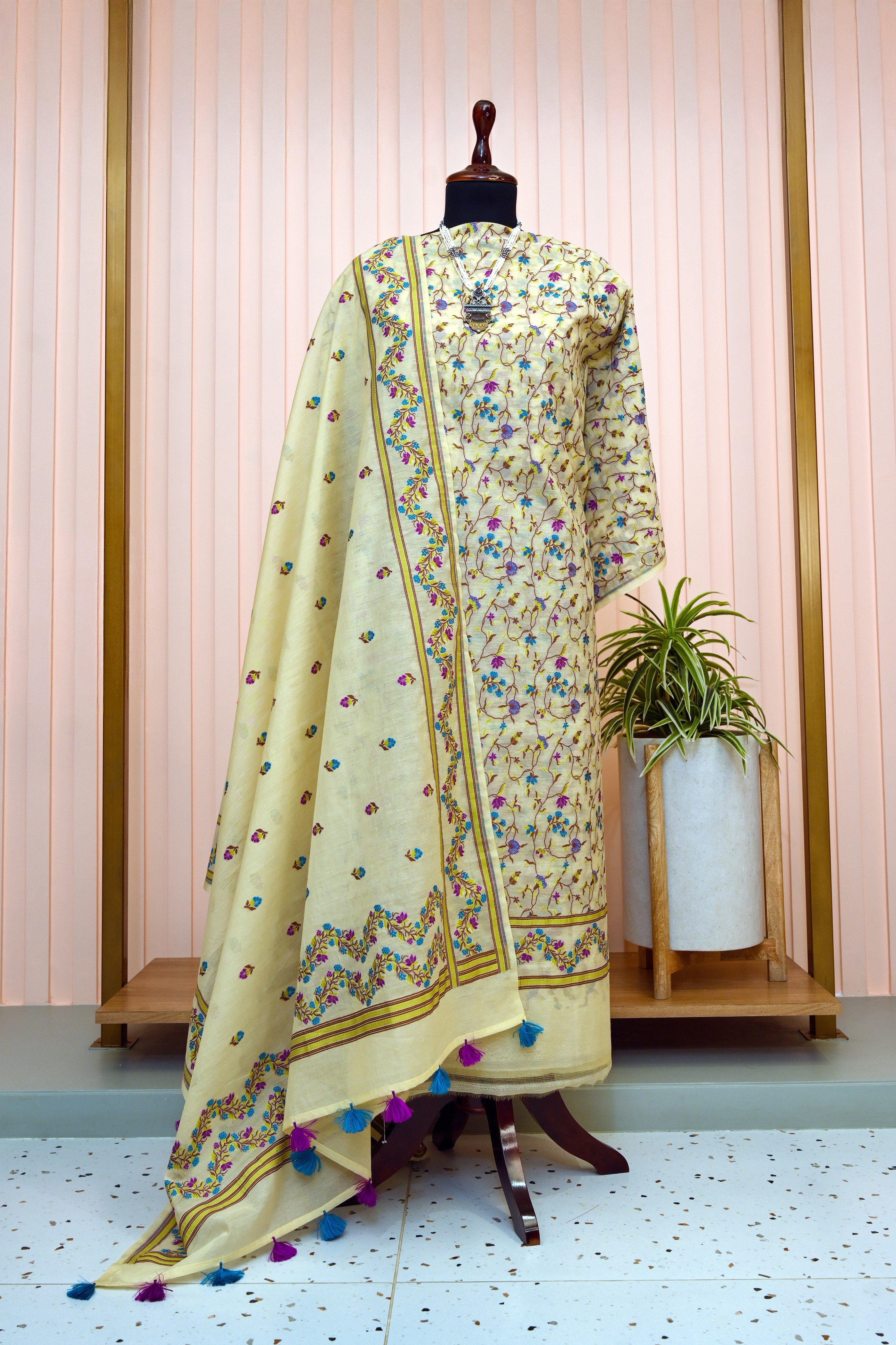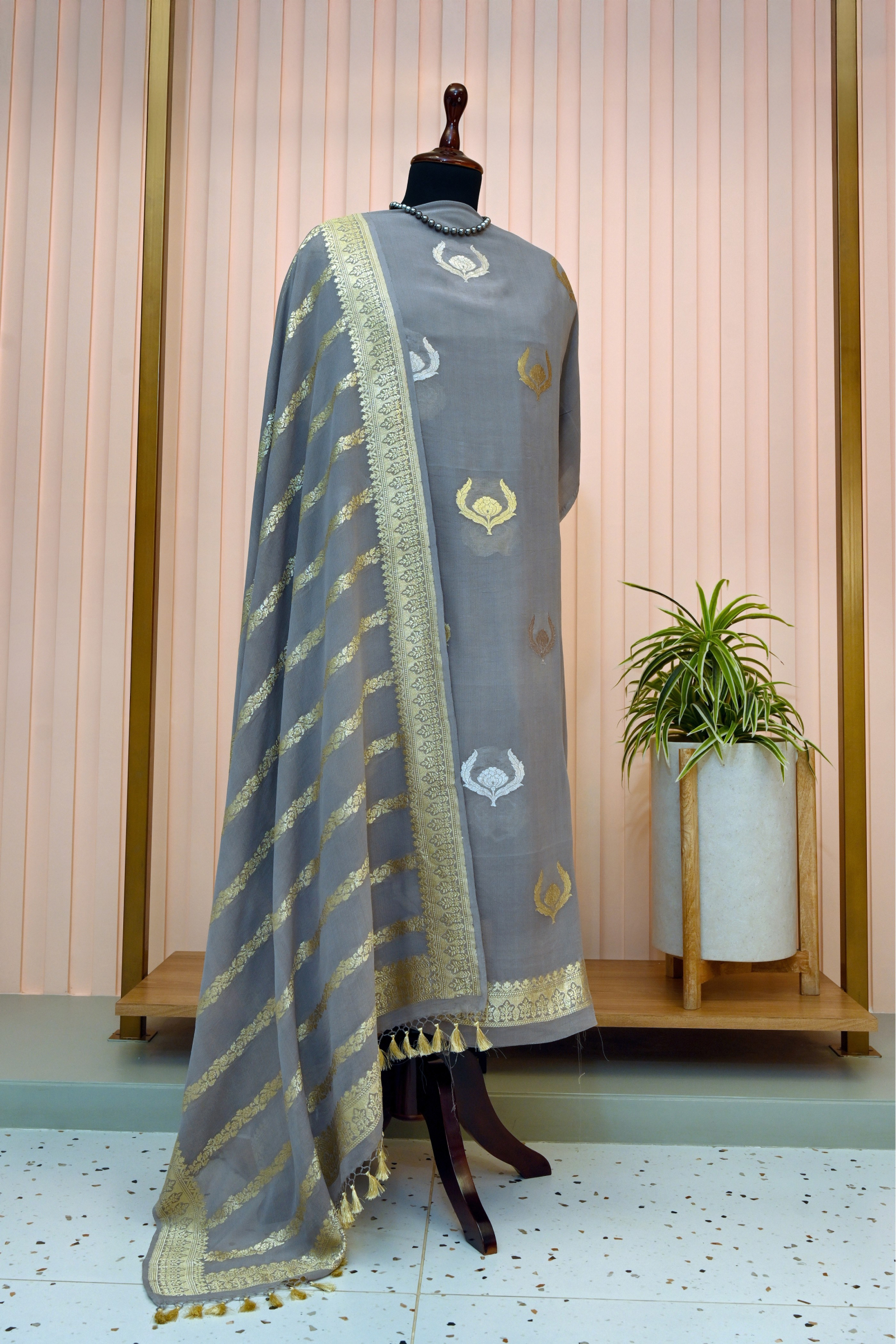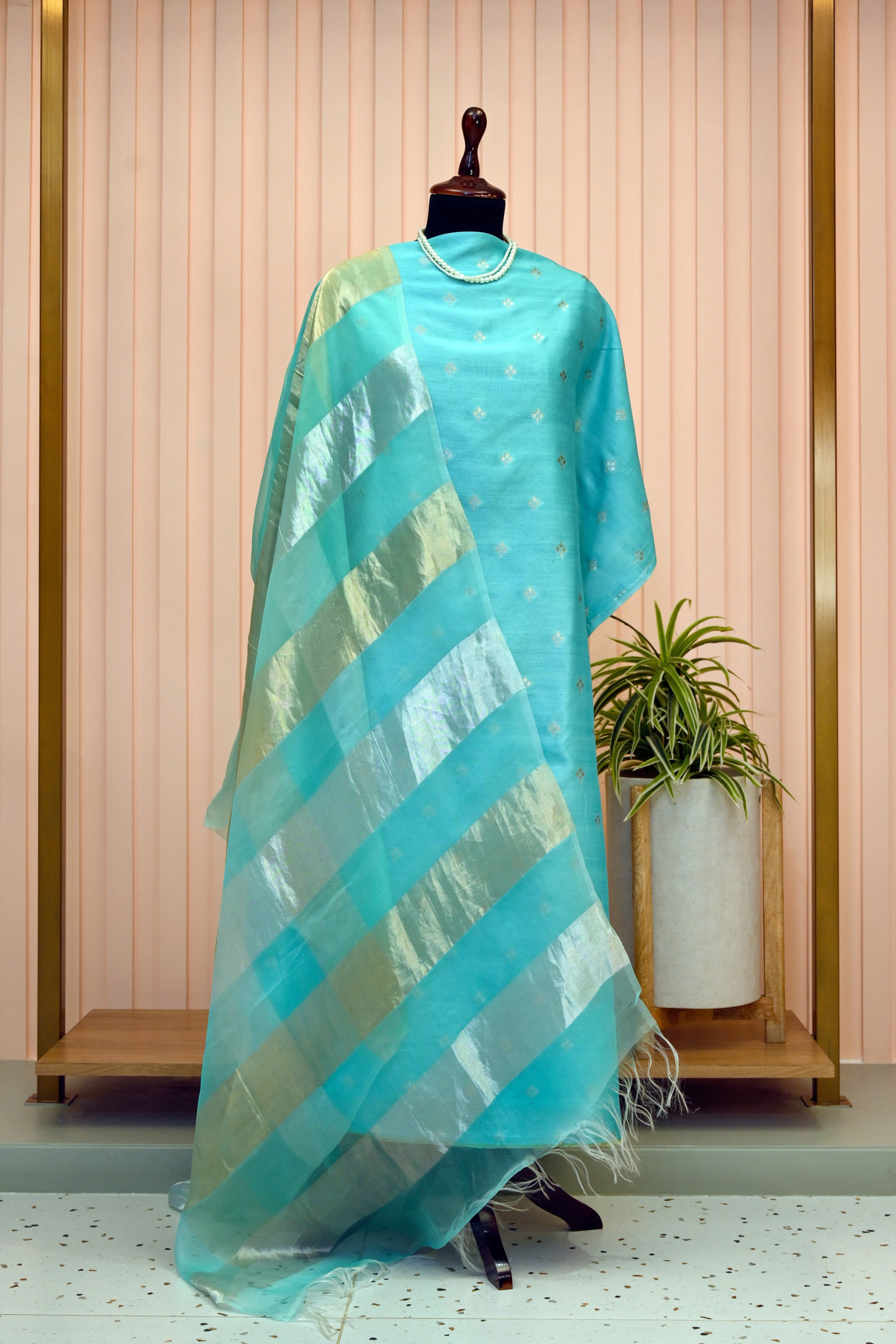 Pastel Lavender Mul Chanderi Organza Dupatta Set