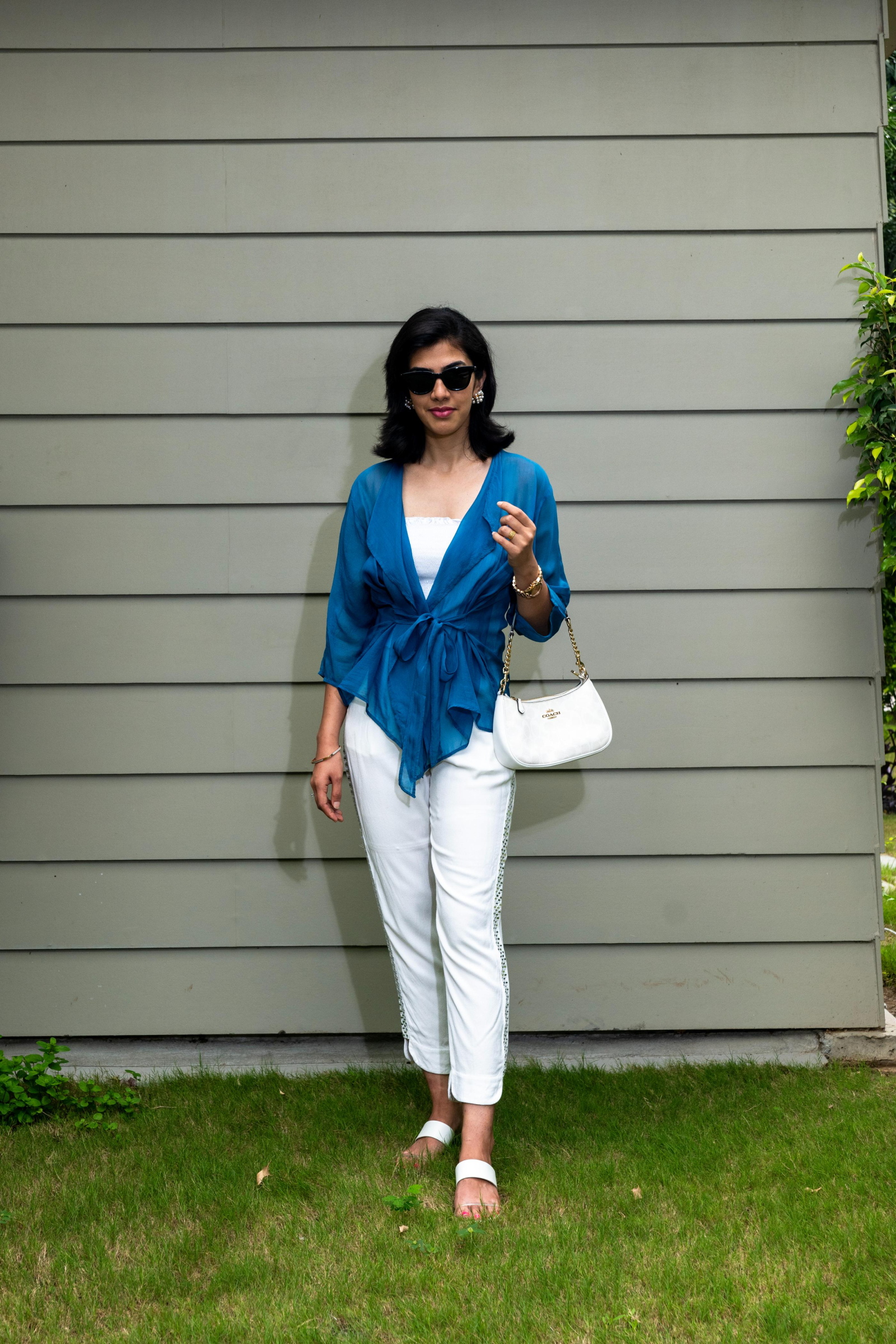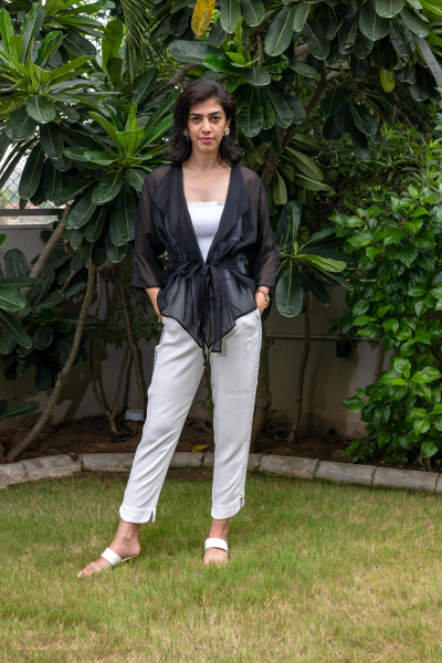 A versatile light overlay/ shrug blouse. That can styled in many ways - with pants, silk skirts, dhoti pants, skirts etc.