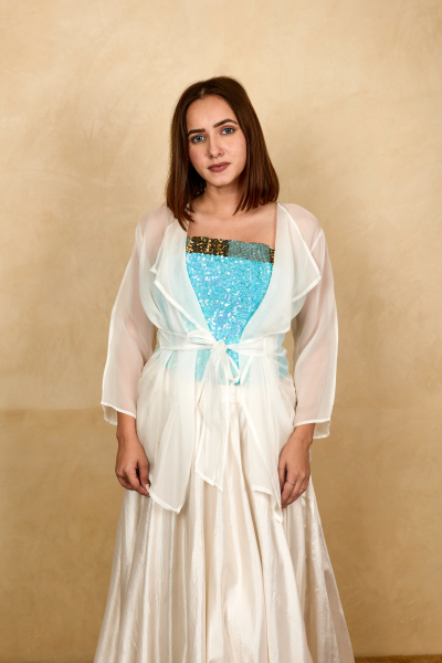 Can be accessorized with a nice neckpiece or earrings, nice pants in self shade or off white. Any western wear pants match this tunic.