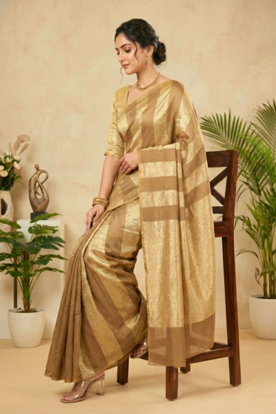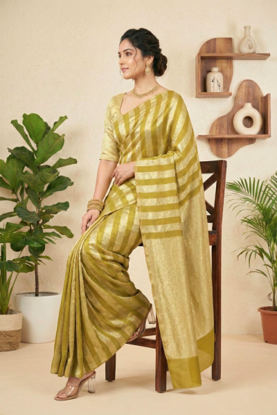 Elevate your ethnic wardrobe with this sophisticated striped Moonga Silk saree. Featuring a timeless linear pattern, the saree utilizes a play of horizontal and diagonal stripes to create a dynamic, modern silhouette. The lightweight nature of Moonga silk ensures a graceful drape, while the subtle metallic sheen provides an understated glow.