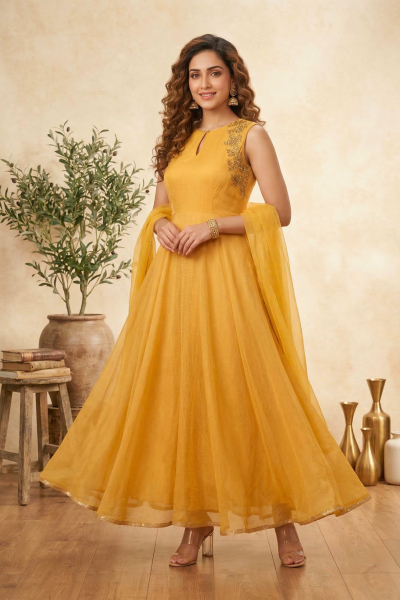 Sunshine Yellow Chiffon Anarkali Suit Set