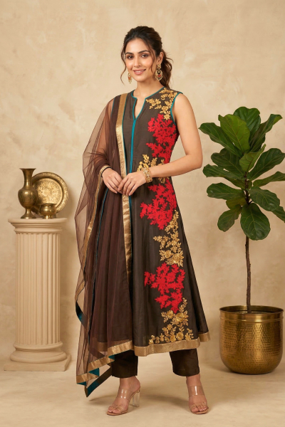 Chocolate Brown Light Kali Threadwork Suit