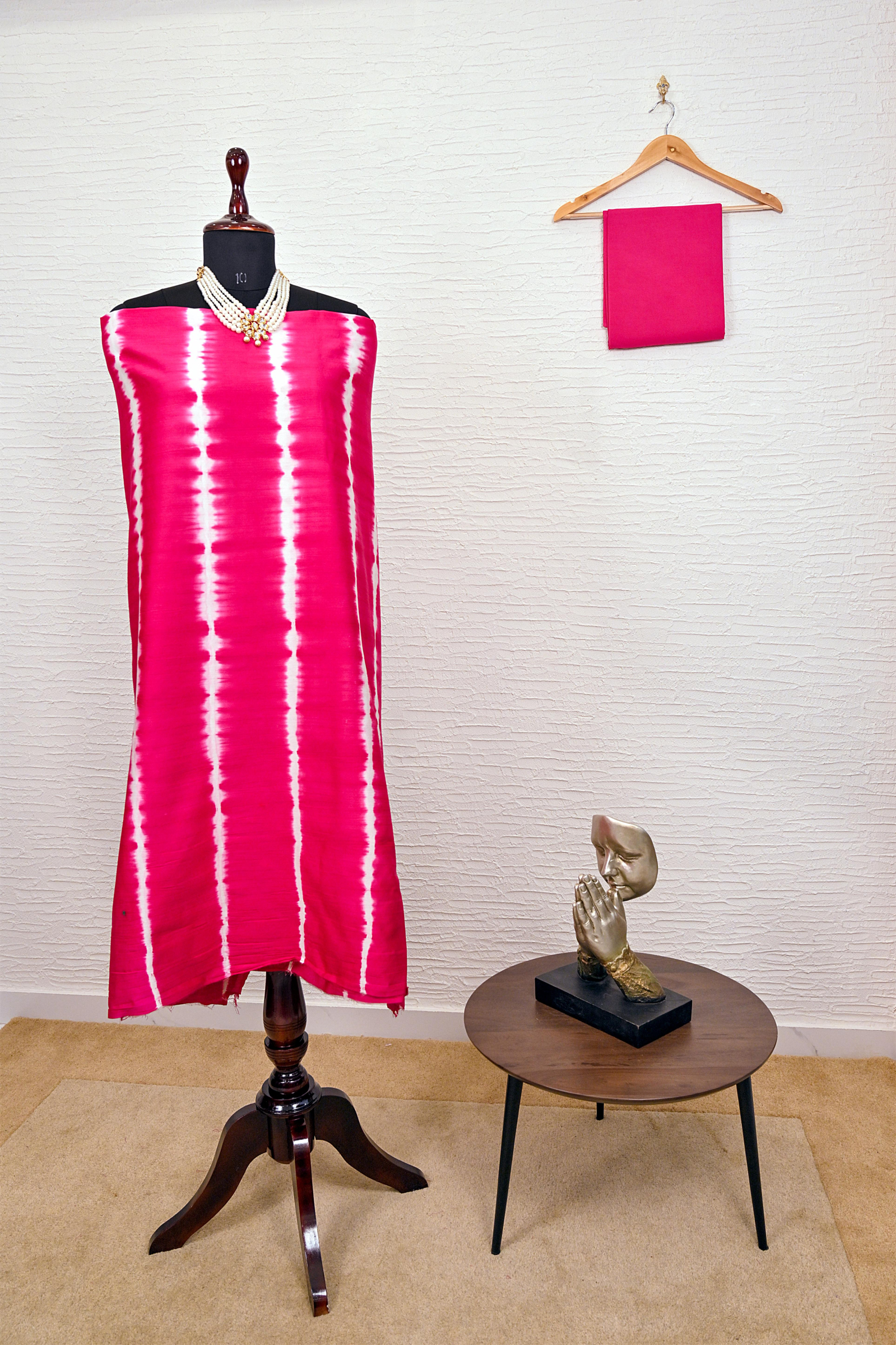 Hot pink tie dye chanderi silk and crepe kurta and pant material set