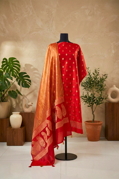 Heirloom Quality: The intricate zari weaving on both the kurta and dupatta ensures this piece remains a timeless addition to your wardrobe.